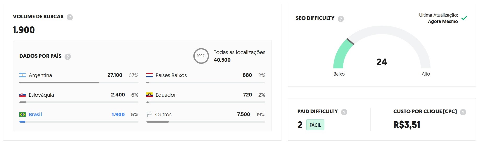 Veja abaixo algumas palavras que destacamos e o seu respectivo volume de buscas, que posicionam o site da Buenos Aires na 1ª página do Google e traz clientes todo dia sem nenhum investimento em Google Ads:
