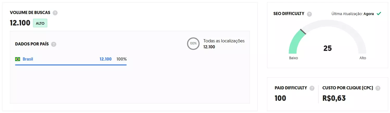 Outro fator relevante é que, com um custo por clique a partir de R$ 2,00, não vale a pena pagar pela palavra quando falamos de Google Ads, sendo então, conseguimos economizar com uma palavra genérica, mas ao mesmo tempo, com o SEO, destacamos a empresa na 1ª página do Google.