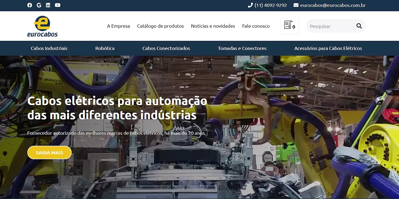 A Eurocabos é especializada em soluções de cabos elétricos e acessórios para automação industrial e robótica. Com mais de 20 anos de experiência, a empresa oferece uma ampla gama de produtos, incluindo cabos de controle, energia, sinal e redes industriais, além de conectores, prensa-cabos e componentes para automação. A Eurocabos trabalha com parceiros internacionais renomados, como Nexans e Bizlink, e fornece produtos de alta qualidade para setores como automotivo, telecomunicações, energia eólica e solar, e mais.